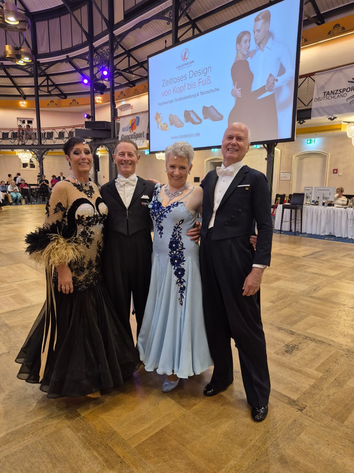 Einen Tag später tanzten dann Truus und Ad zusammen mit Annette und Thomas Kreuels im Turnier Rising Stars Senioren IV. Mit 103 Paaren aus 14 Nationen war auch dieses Startfeld sehr gut besetzt.
